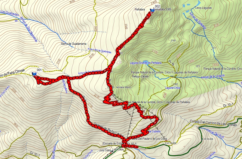 PUERTO DE LOS COTOS (1829 m) - PEÑA CITORES (2181 m) - DOS HERMANAS (MENOR: 2284 m) - PEÑALARA (2429 m) - PUERTO DE LOS COTOS (1829 m) |