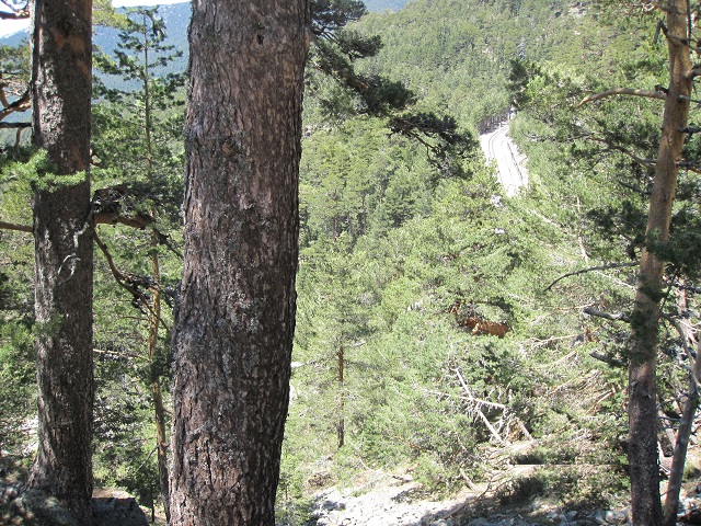 | Llegados a este lugar, salimos de la vía por nuestra izquierda y comenzamos la fuerte e incómoda subida hacia la carretera del Puerto de Navacerrada. |