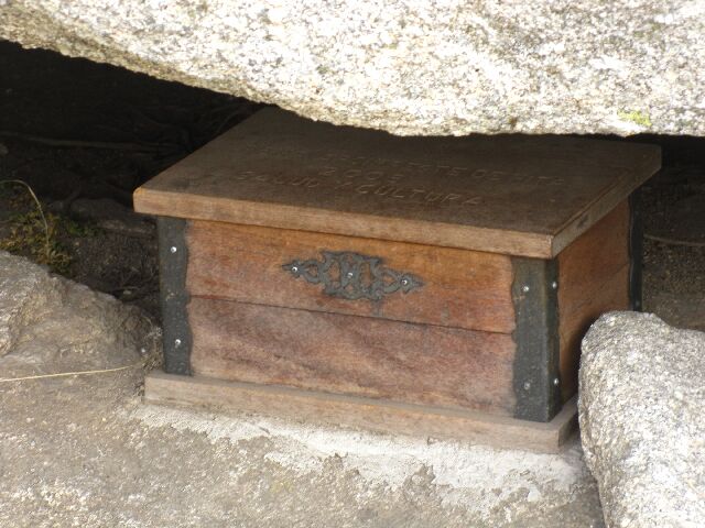 | Cofre que contiene un ejemplar del Libro del Buen Amor y firmas recuerdo de anteriores visitantes. |