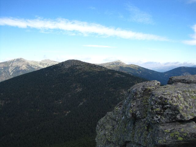 | Panorámica desde la cumbre de Peñota: Peña del Águila. Detrás a la izquierda, La Pinareja y el Oso. Detrás a la derecha Montón de Trigo, Minguete y el Puerto de La Fuenfría. |