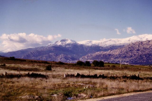 | La Maliciosa en invierno desde la carretera de Manzanares el Real. |