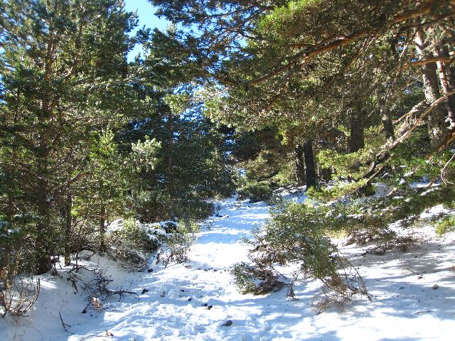 La pista de bajada. Discurre por la vertiente norte y se toma dejando a la derecha el camino por el que realizamos la subida.