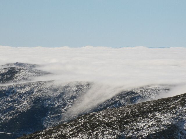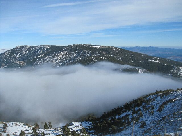 La niebla intentando pasar el Puerto de Navafría. El viento del sur se lo impide.