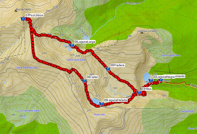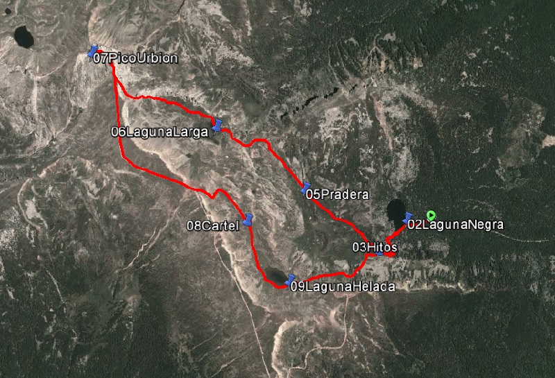 | APARCAMIENTO (1698 M) - LAGUNA NEGRA (1761 m) - PORTILLA (1850 M) - LAGUNA LARGA (2016 m) - PICO URBIÓN (2228 m) - LAGUNA HELADA (1993 m) - PORTILLA (1850 M) - LAGUNA NEGRA (1750 m) - APARCAMIENTO (1768 m) |