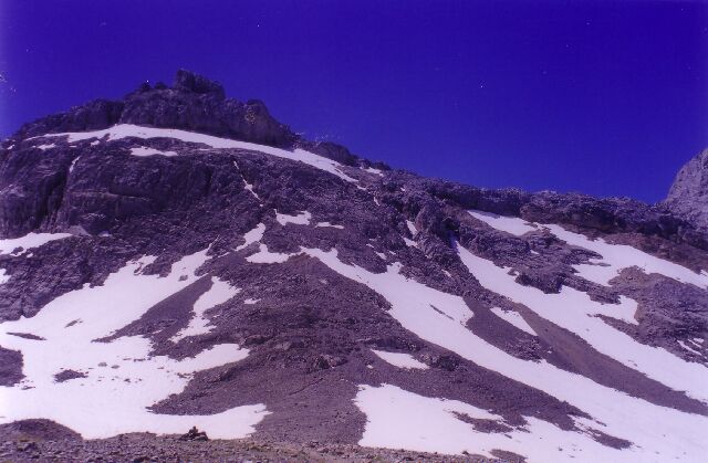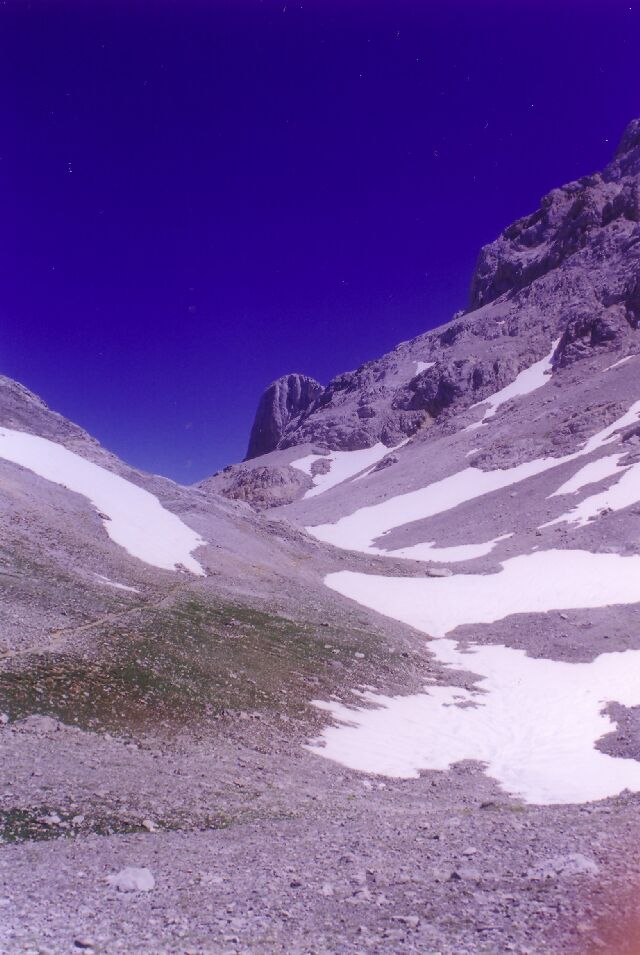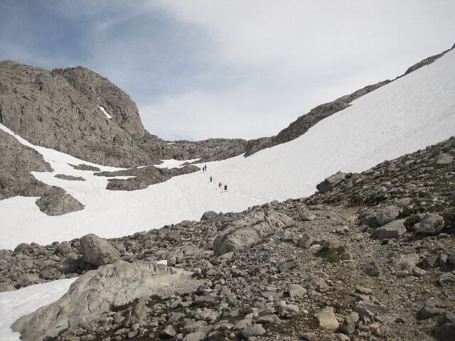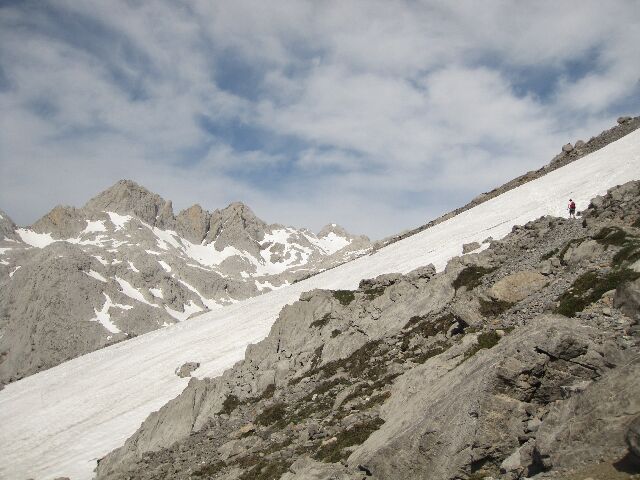 | Dura vida la del montañero... Neveros y mas neveros. Estamos en Junio. |