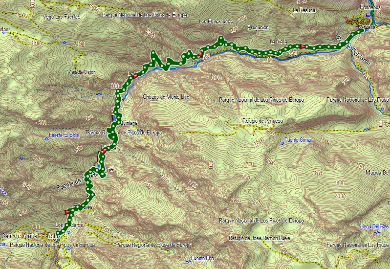 | Track Puente Poncebos - Caín (Ruta del Cares). |