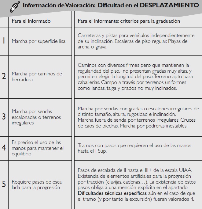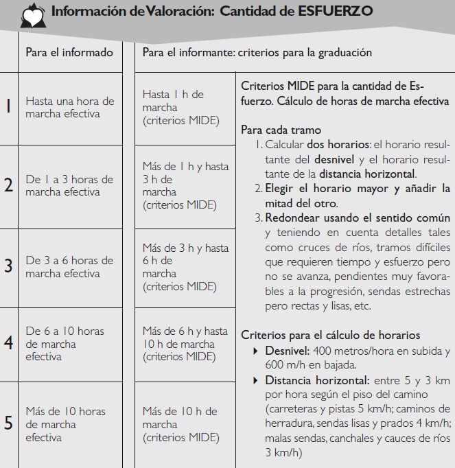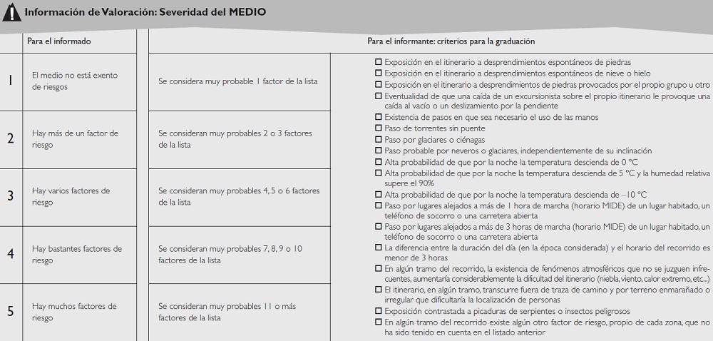 La clasificación MIDE que aparezca será obtenida tanto de la experiencia directa del autor y sus acompañantes, como de todas las fuentes que puedan aportar datos de cada itinerario, de forma que se obtengan valores tan objetivos como sea posible. |