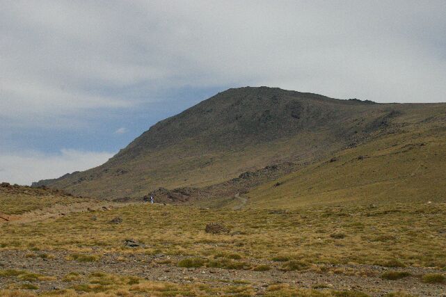 Aproximación al Mulhacén por la pista forestal, ya cerca del Mirador de Trévelez.