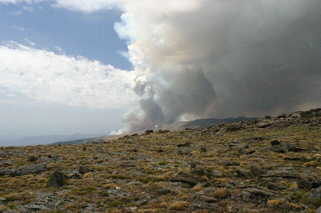 Una imagen especial: El día de nuestra subida al Mulhacén se declaró un incendio en las colinas de enfrente.