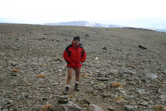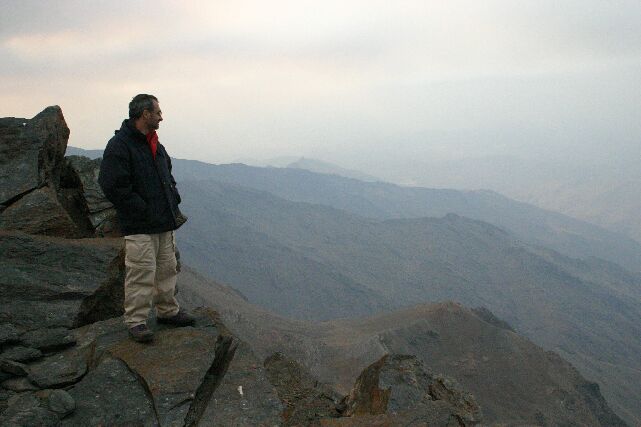 Mi compañero Luis y la vista hacia el norte desde la cima del Mulhacén.
