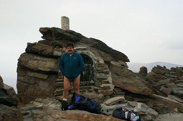 Por fin, la cima del Mulhacén, con el vértice geodésico y la pequeña capilla.