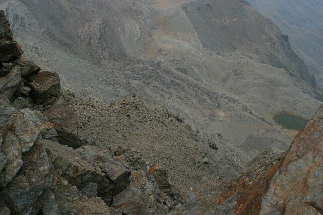 Cara Norte del Mulhacén y Laguna de La Mosca. Por esta laguna pasa el recorrido que, saliendo de Güejar - Sierra, sigue la Vereda de La Estrella y sube al Mulhacen desde el norte. Nuestro recorrido lo sube desde el sur.