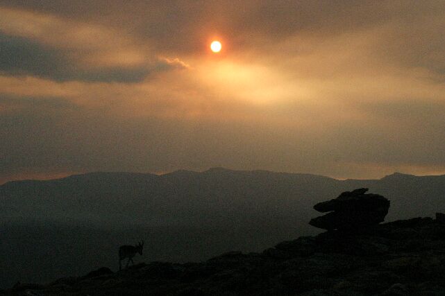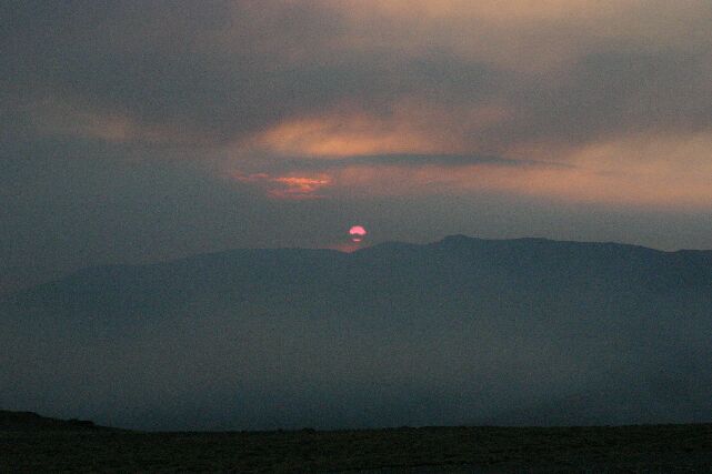 El sol entre el humo del incendio. Las cenizas llegaban hasta nosotros y el cielo se oscureció mucho antes de lo previsto.